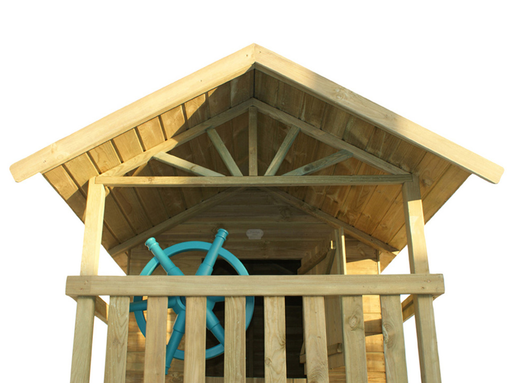 Das Spielhaus ist mit kesseldruckimprägniertem Kiefern-Profilholz gearbeitet und ist somit besonders witterungsbeständig. Die 8,8 x 8,8 cm starken Pfosten gewährleisten höchste Stabilität. Wir empfehlen eine Verankerung mit Bodenankern im Erdreich. - Einfacher und schneller Aufbau