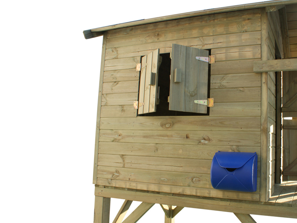 Das Stelzenhaus wird mit Einzeltür, Fenster, Leiter und Handgriff geliefert und sorgt für großes Spielvergnügen bei den Kindern.