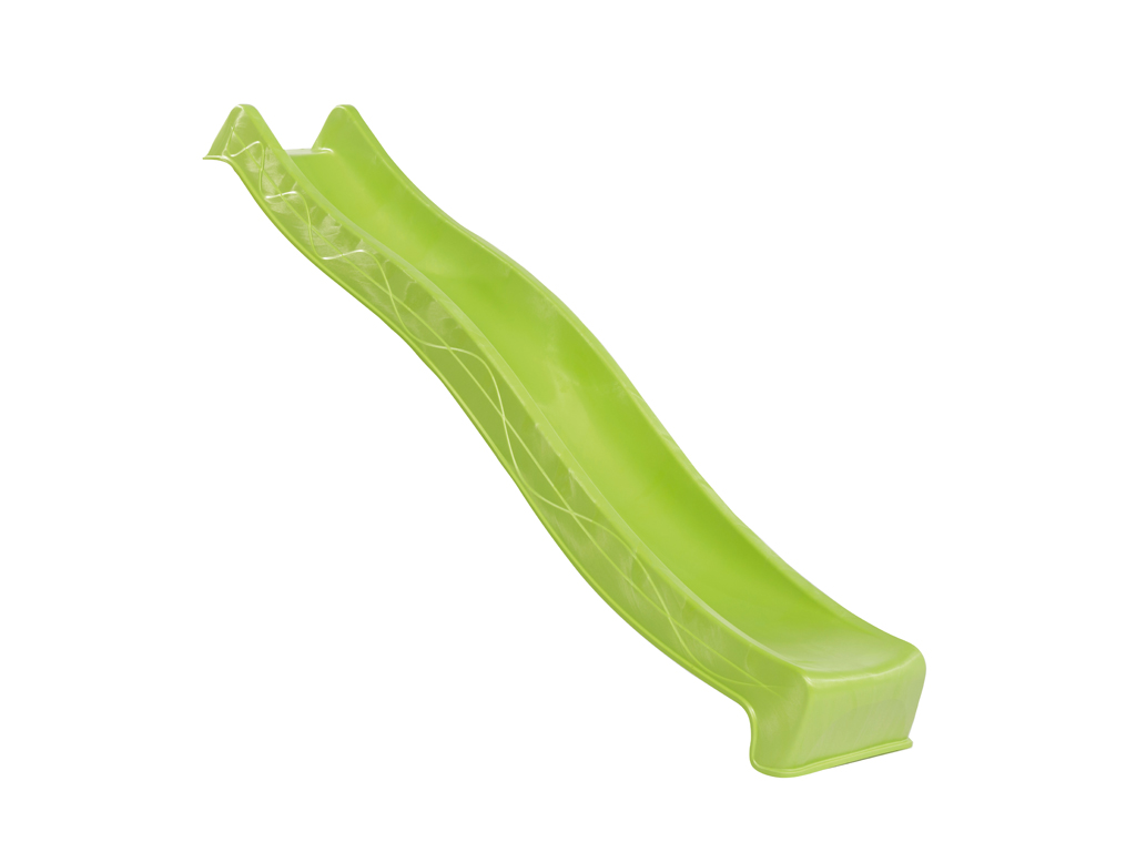 Eine 2,9 Meter lange, grüne Wellenrutsche ist im Sparset bereits enthalten. Die Rutsche lässt sich mit wenigen Handgriffen in eine Wasserrutsche verwandeln. Hierfür befindet sich an der Unterseite der Rutsche ein Anschluss für den Gartenschlauch, der einmalig mit einem Bohrloch hergestellt werden kann.