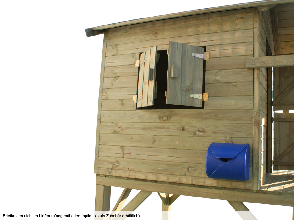 Das Stelzenhaus wird mit Einzeltür, Fenster, Leiter und Handgriff geliefert und sorgt für großes Spielvergnügen bei den Kindern.