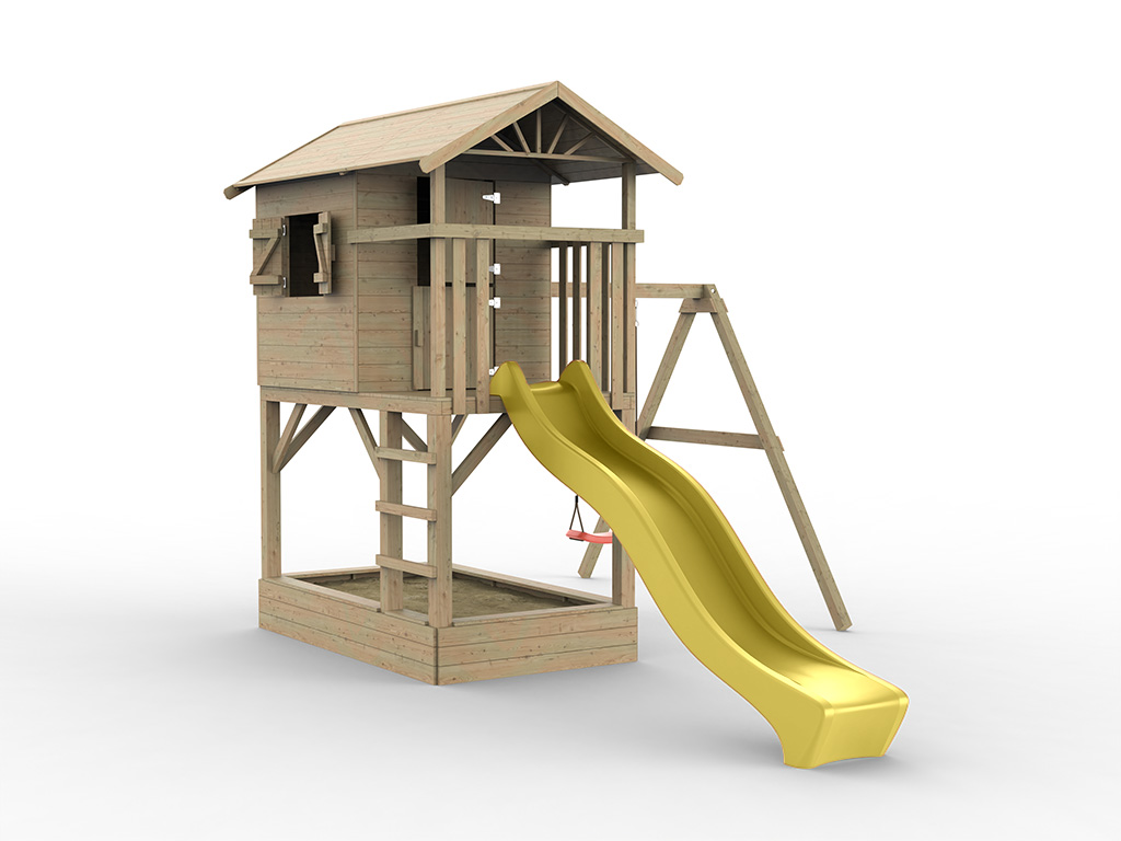 Stelzenhaus Tree Hut mit Sandkasten KDI inkl. Einzelschaukel und Rutsche gelb