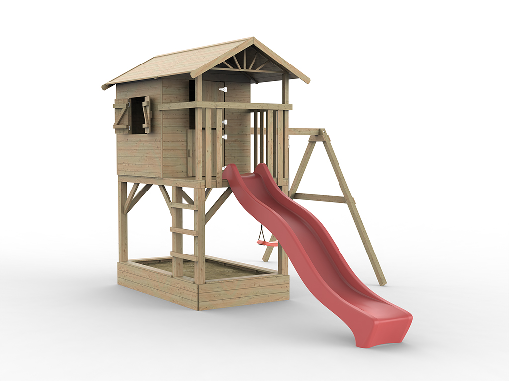 | Lieferumfang: | Stelzenhaus Tree Hut, Sandkasten, Leiter, Fensterläden, Veranda, Handgriff, detaillierte Montageanleitung, Rutsche rot, Einzelschaukel, 1 Schaukelsitz rot |