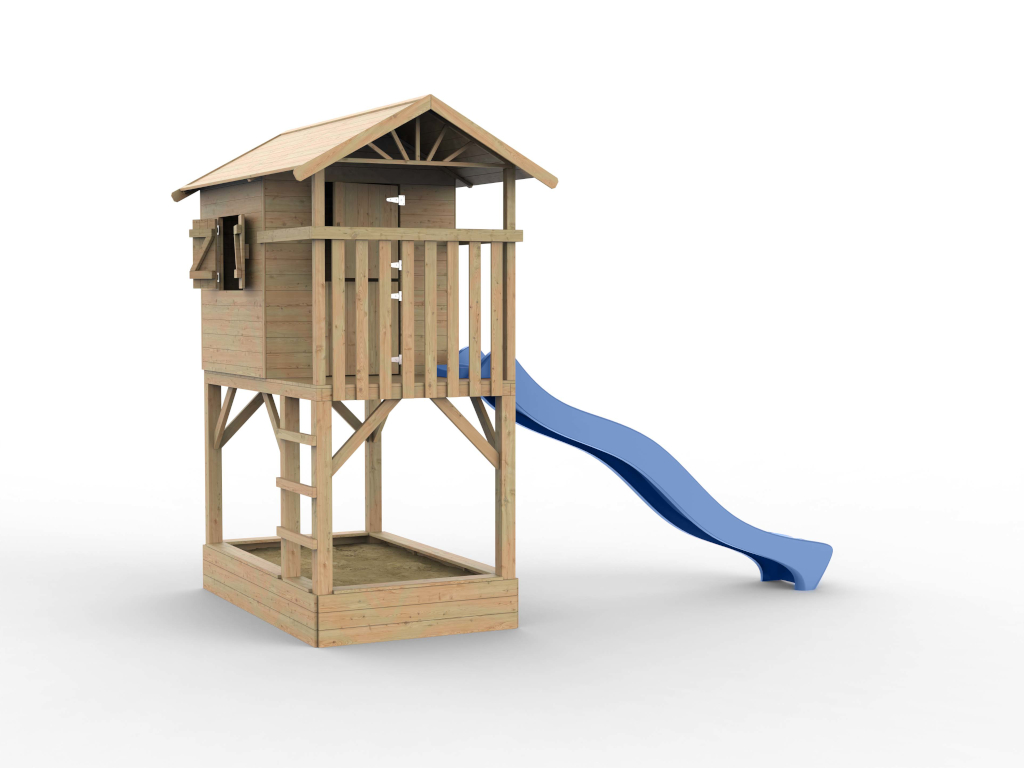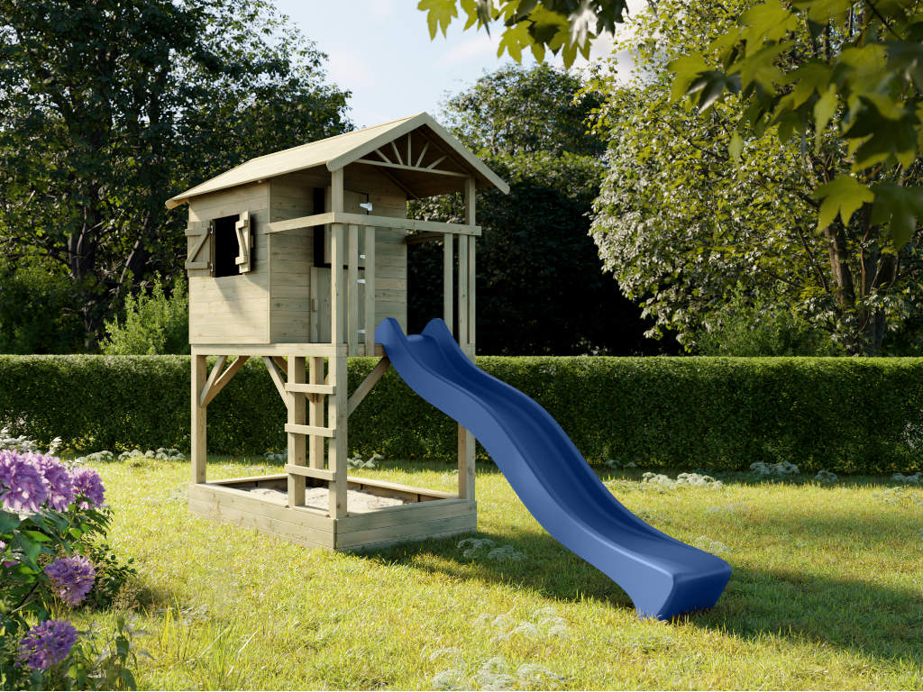 Stelzenhaus Tree Hut mit Sandkasten KDI inkl. Rutsche blau
