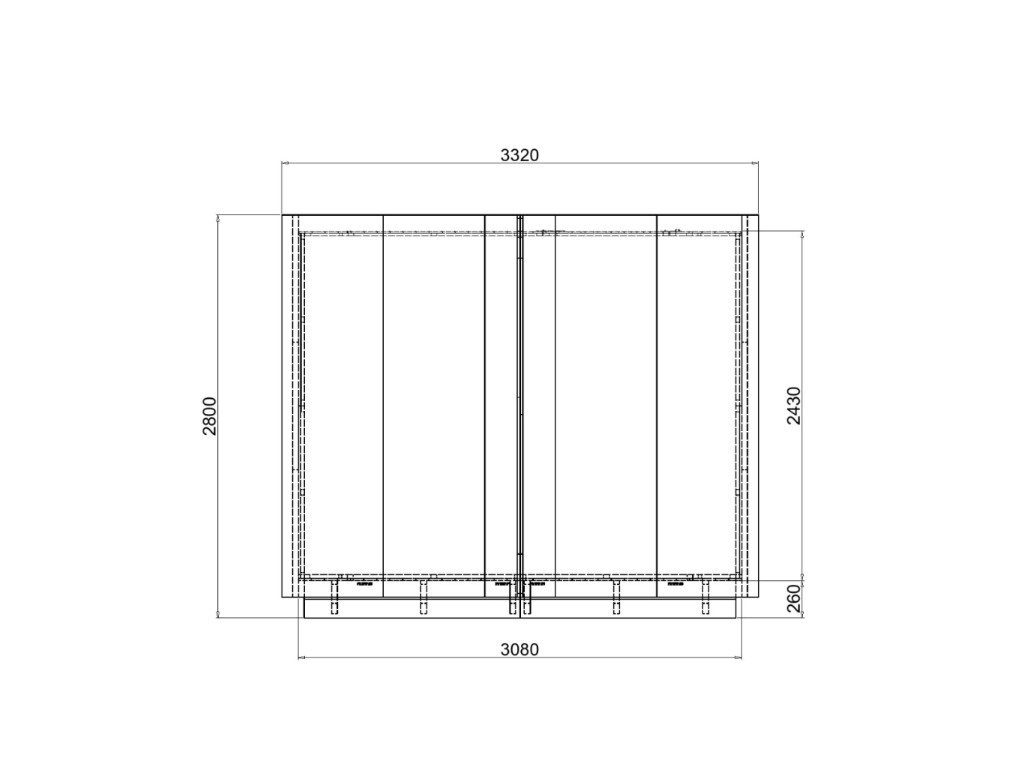 | Außenmaß inkl. Dachüberstand (B x T): | 332 x 280 cm |