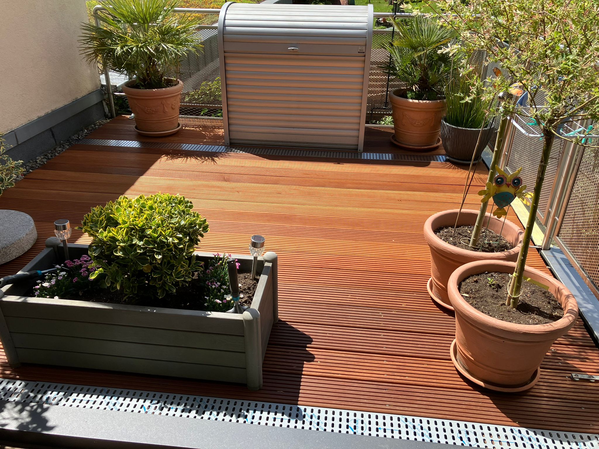 Bitte beachte, dass Farben und Maße unserer Holzterrassendielen produktionsbedingt sowie durch natürliche Materialeigenschaften leicht variieren können. Geringfügige Abweichungen stellen keinen Qualitätsmangel dar.