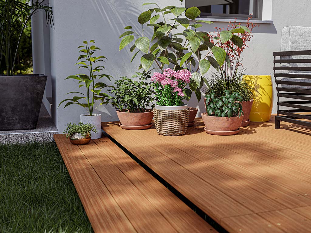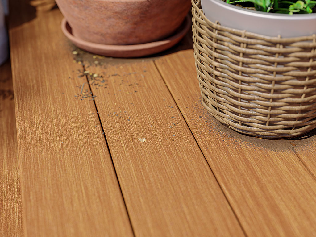 Bitte beachte, dass Farben und Maße unserer Holzterrassendielen produktionsbedingt sowie durch natürliche Materialeigenschaften leicht variieren können. Geringfügige Abweichungen stellen keinen Qualitätsmangel dar.