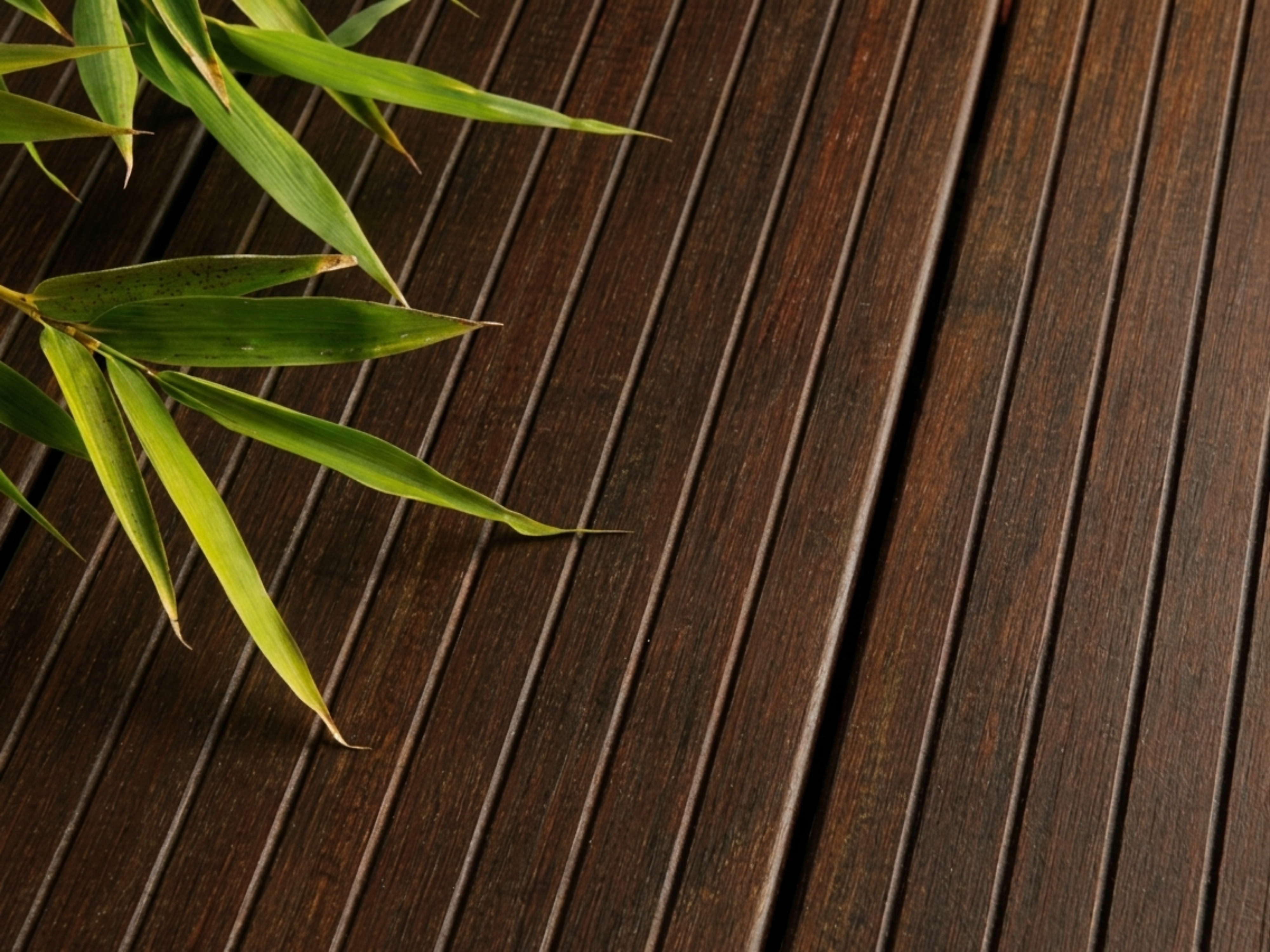 Bambus ist als schnellwachsender Rohstoff eine umweltfreundliche Alternative zum gängigen Rohstoff Holz. Durch thermische Modifizierung werden die Bambusfasern zuerst für den Einsatz im Außenbereich vorbereitet und anschließend wasserfest verleimt und gepresst. Das Resultat ist ein besonders dichtes, stabiles und hartes Material – das ideale und haltbare Element für den Außenbereich. Durch Hobeln und Ölen erhalten die Bambusdielen ihre schöne Oberfläche.