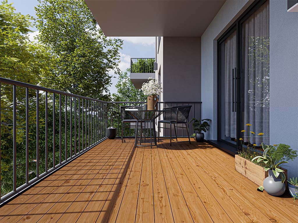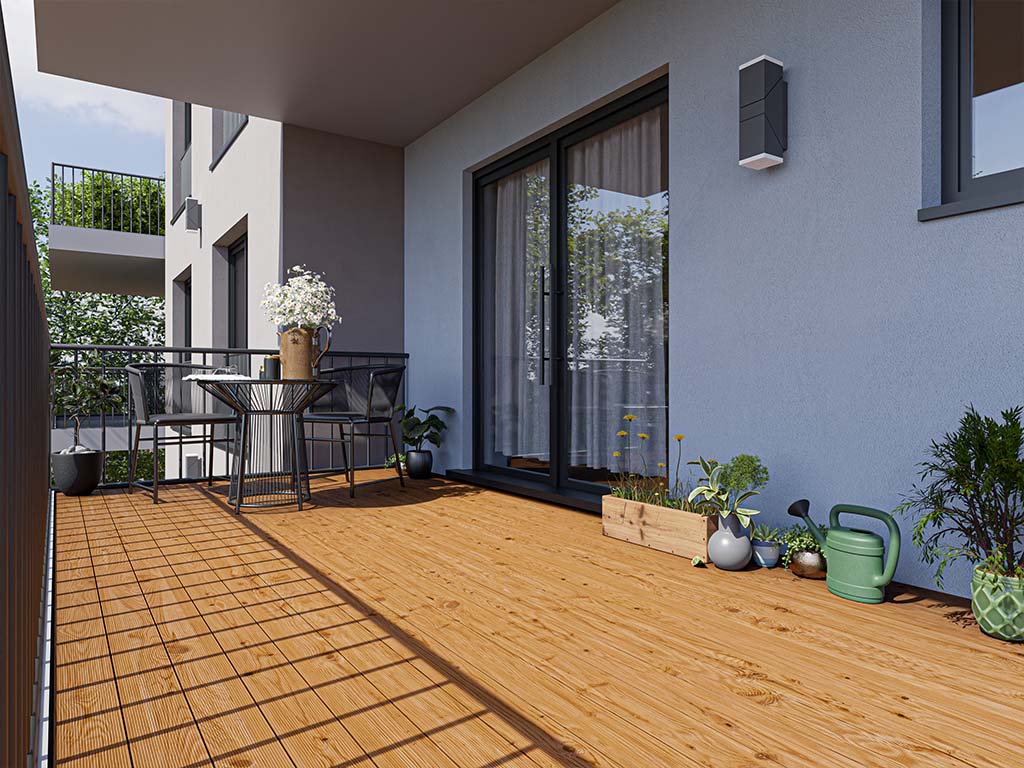 Da das Holz je nach Holzart unterschiedlich arbeitet, muss das Material der Unterkonstruktion und der Dielen aufeinander abgestimmt werden. Ausschlaggebend ist hier die Dauerhaftigkeitsklasse des Holzes, die sich höchstens um eine Klasse unterscheiden darf. Für Hartholz-Dielen sollte Konstruktionsholz aus Hartholz verwendet werden, bei Nadelholz-Dielen ist eine Unterkonstruktion aus Nadelholz ausreichend. Alternativ zum Konstruktionsholz kann man Konstruktionen aus Aluminium montieren. Sie sind formstabil, dauerhaft und für alle Holzarten sowie für WPC-Dielen geeignet.