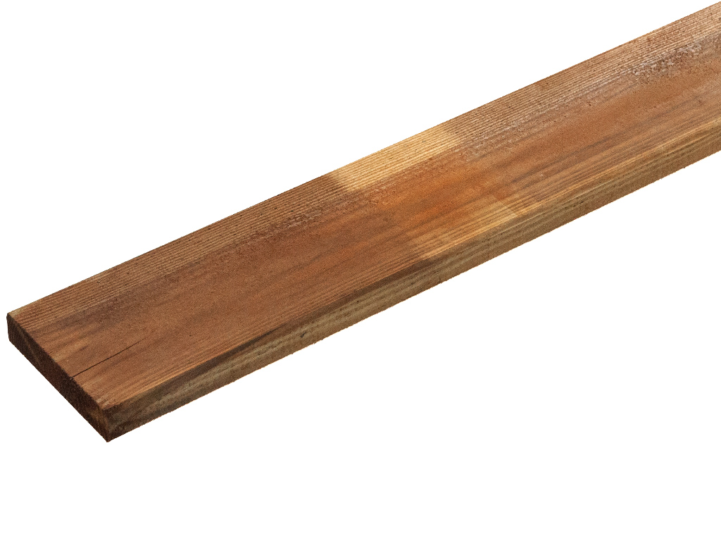 Diese Dielen sind kesseldruckimprägniert (KDI-Holz). Das Holzschutzverfahren verschließt die Poren vom Holz mit kupferhaltigen Salzen und macht es widerstandsfähiger gegenüber Insekten-, Pilz- und Schimmelbefall. Damit wird seine Haltbarkeit – im Vergleich zu unbehandelten Hölzern – um bis zu 10 Jahre erhöht. Durch die Reaktion der Harze im Holz mit den Salzen können kleine weiße und grünliche Flecken (die sogenannten Salzausblühungen) entstehen. Mit der Zeit verblassen sie im UV-Licht. Alternativ können sie abgebürstet bzw. mit einer Lackierung oder Lasur weiter veredelt werden.