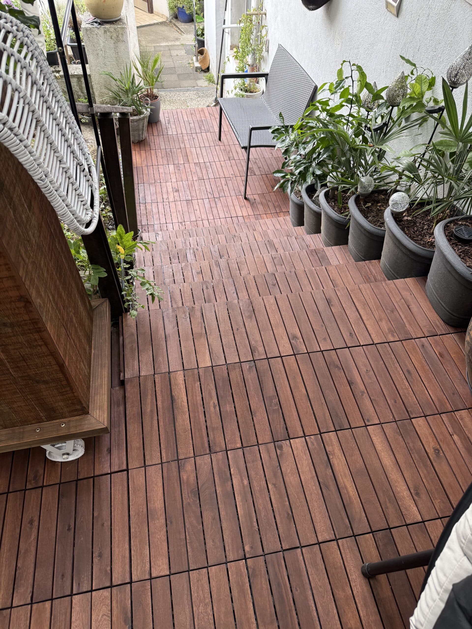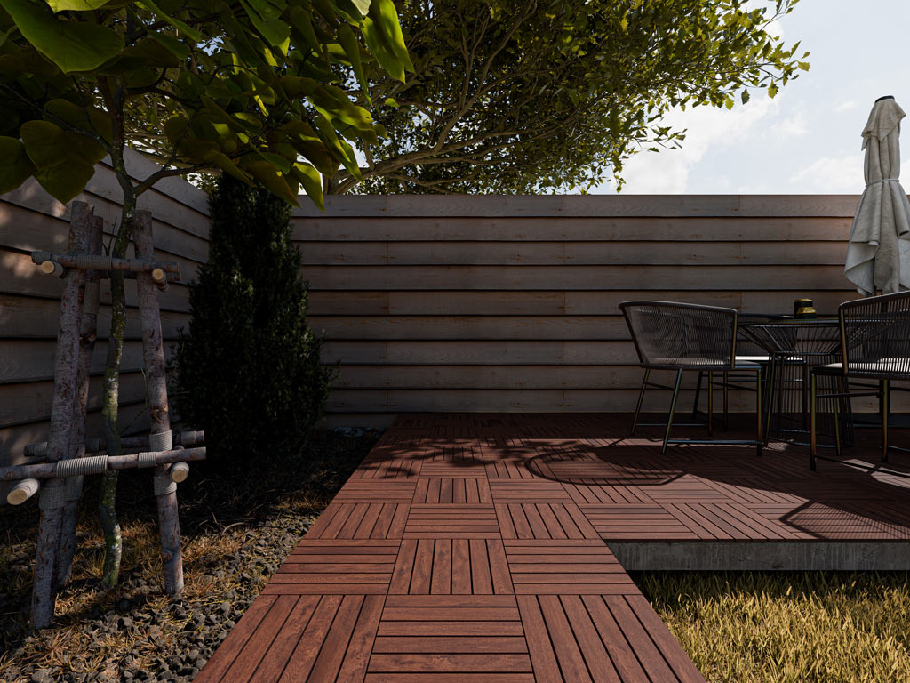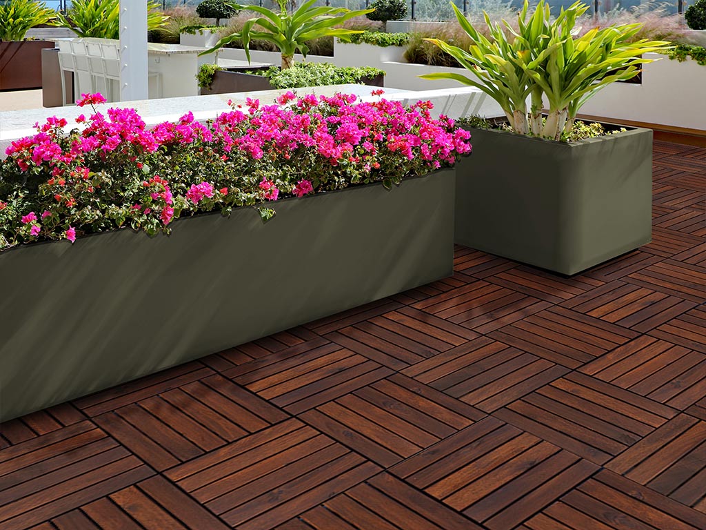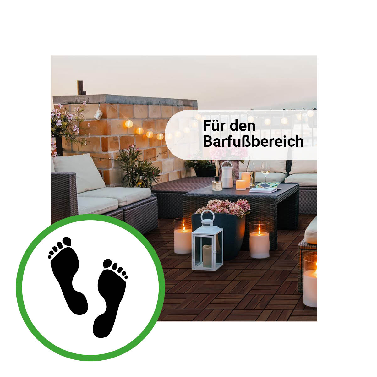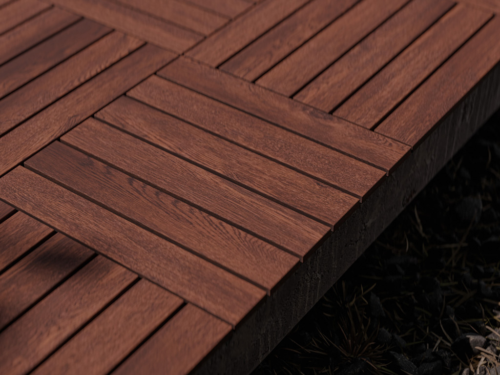 Qualitativ hochwertige Holzfliesen mit witterungsbeständigem PVC-Grundträger zum sagenhaft günstigen Preis.