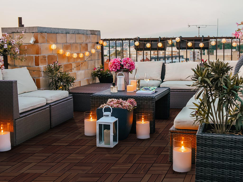 Es ist wichtig, Holzfliesen mit farbpigmentierten Ölen oder Naturölen zu behandeln, um sie unempfindlicher und widerstandsfähiger gegenüber Schmutz und witterungsbedingten Schäden zu machen. Verschmutzungen können entweder mit einem Besen abgebürstet oder mit Wasser und einer milden Seife abgewischt werden. Bei Hochdruckreinigern sollte man dagegen vorsichtig sein: Das Holz kann durch die Maschine aufgeraut, die Schutzschicht beschädigt und damit die Lebensdauer der Fliese verkürzt werden.
