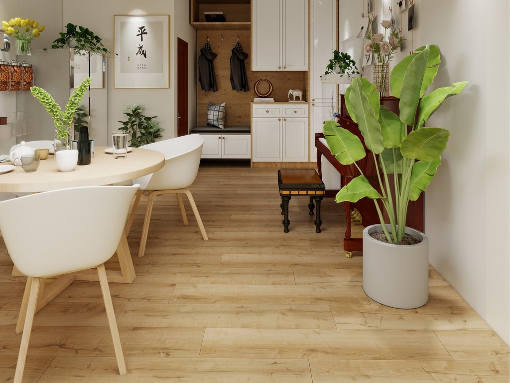 Im Nu sind diese Dielen schwimmend verlegt – dank praktischer Klickverbindung. Mit der gewerblichen Nutzungsklasse (NK) 31 eignet sich der Boden für leichte Beanspruchung wie in Kleinbüros oder Konferenzräumen. Die integrierte Trittschalldämmung fängt einen Teil des Geh- und Trittschalls ab und hemmt so störende Geräuschentwicklung beim Laufen – auch für die Nachbarn. Eine zusätzliche Unterlage ist nicht erforderlich und nicht zulässig.
