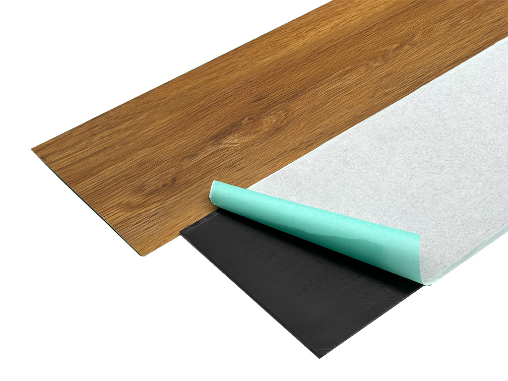 Der Vinylbodenaufbau ist meist fünfschichtig: Die strapazierfähige PU-vergütete Nutzschicht, die mit dem Dekor verpresst ist, darunter der Vinylträger, dann die Trägerplatte sowie der untere Gegenzug, der dem Verziehen der Diele entgegenwirkt.