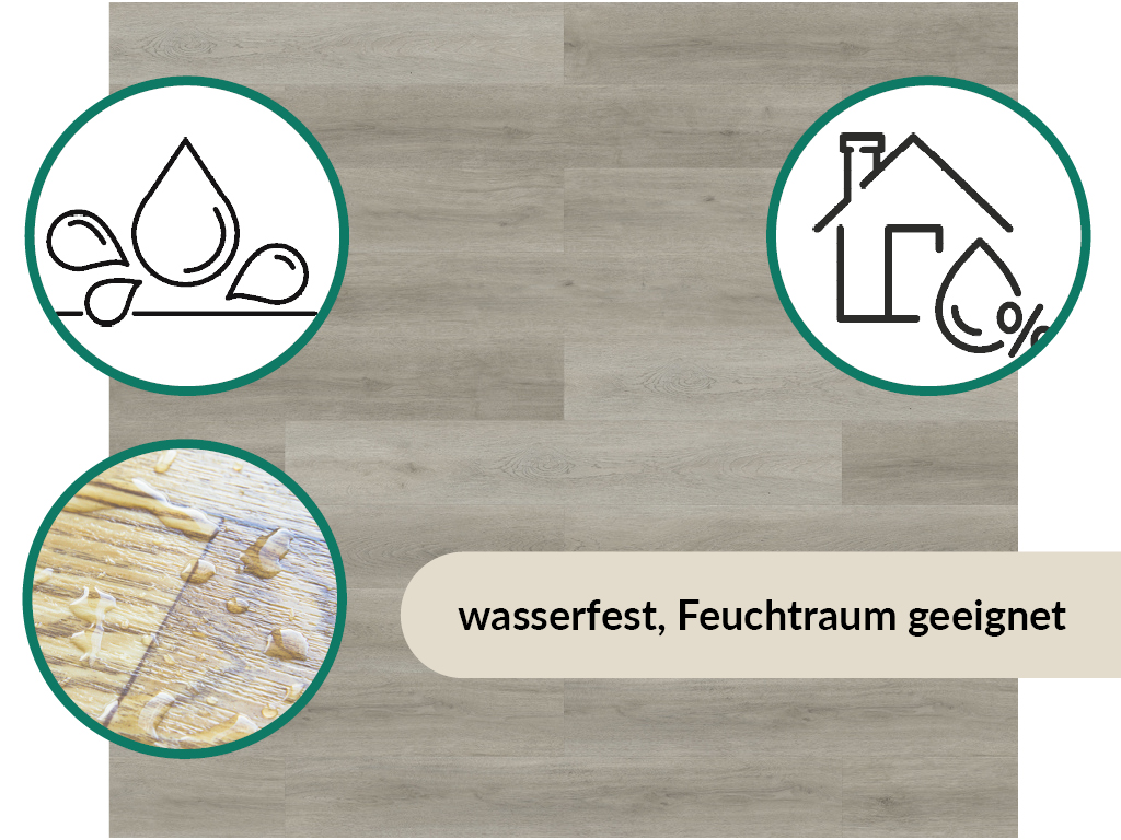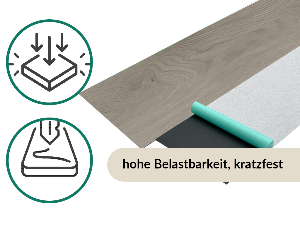 Die 0,2 mm dicke Nutzschicht gewährleistet eine besondere Langlebigkeit und Stoß- sowie Kratzunempfindlichkeit des Bodenbelags. Optimaler Schutz vor Nässe ist ein besonderes Merkmal dieses hochwertigen Produkts. Es ist daher für die Verlegung in Feuchträumen bestens geeignet. Über einer Warmwasserfußbodenheizung kann dieser Boden problemlos verlegt werden.