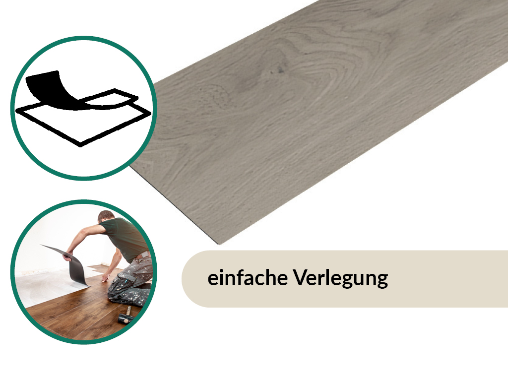 Um ausreichende Stabilität und Langlebigkeit zu gewährleisten, muss dieser Vinylboden vollflächig verklebt werden. Im privaten Bereich mit normaler Belastung, etwa für Wohn- und Esszimmer, Arbeitszimmer oder Hobbyraum, ist dieser Bodenbelag der Nutzungsklasse 22 gut geeignet.