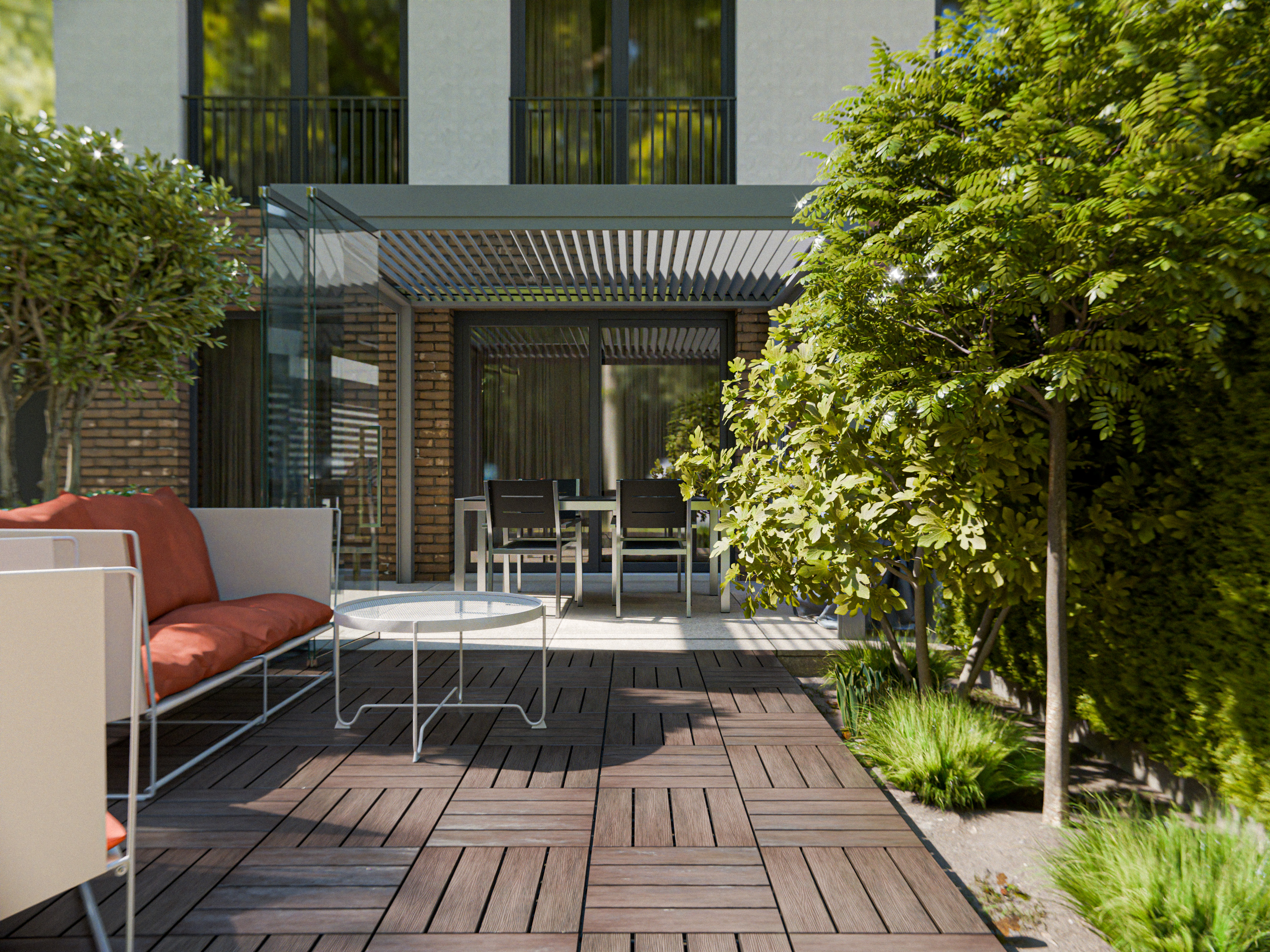 Diese 21 mm starken Terrassenfliesen werden aus WPC hergestellt. WPC (Wood Plastic Composite) ist eine Verbindung aus ca. 70 % Holz und 30 % Kunststoff mit vielen Vorteilen. Dieser Verbundwerkstoff ist nicht nur leicht zu pflegen und reinigen, sondern auch witterungsbeständig, form- und farbstabil, splitterfrei sowie rutschfest – der ideale Terrassenbelag. Außerdem zeichnet er sich durch die hohe Dichte aus, die ihn gut vor Insektenbefall schützt.