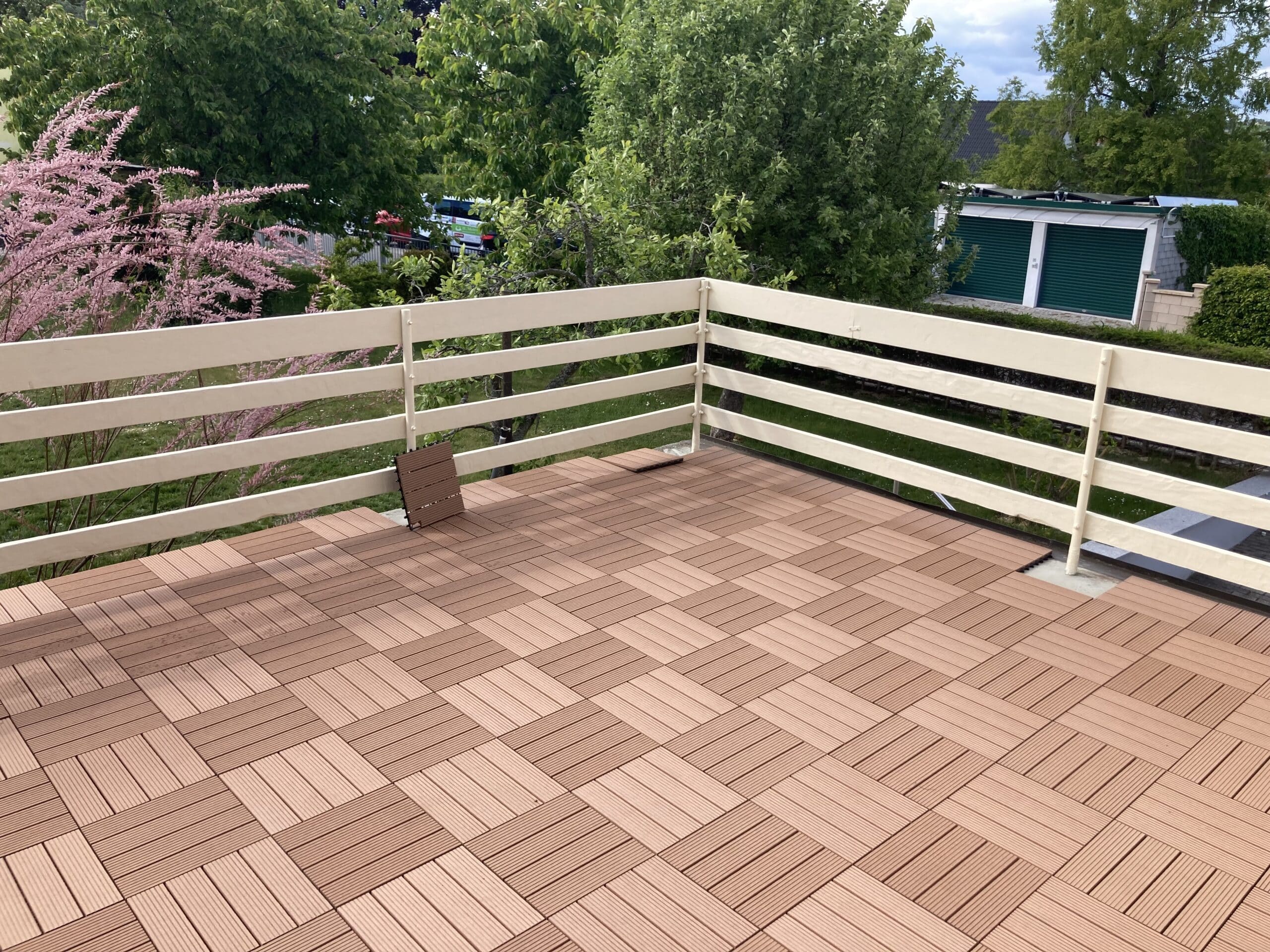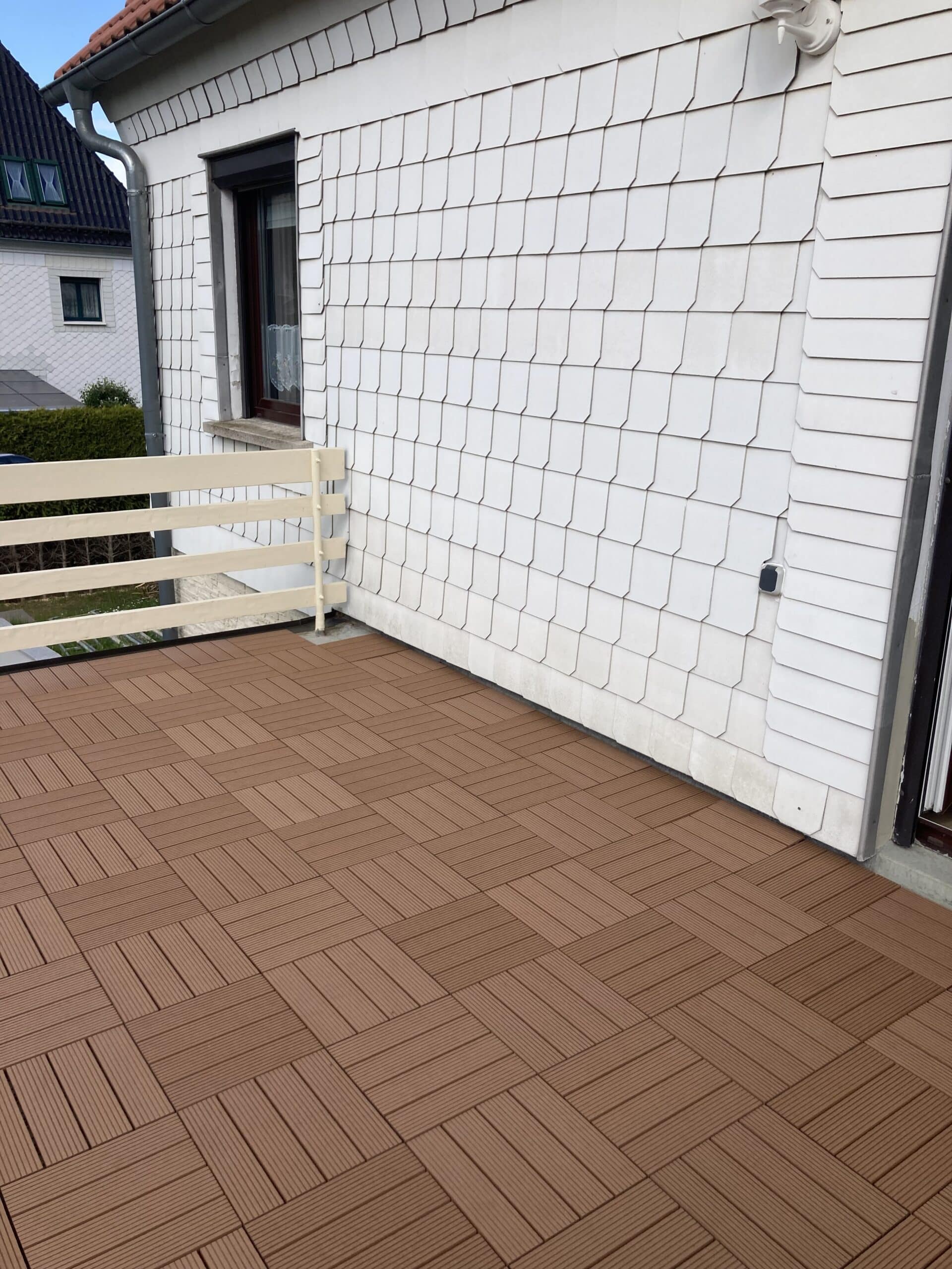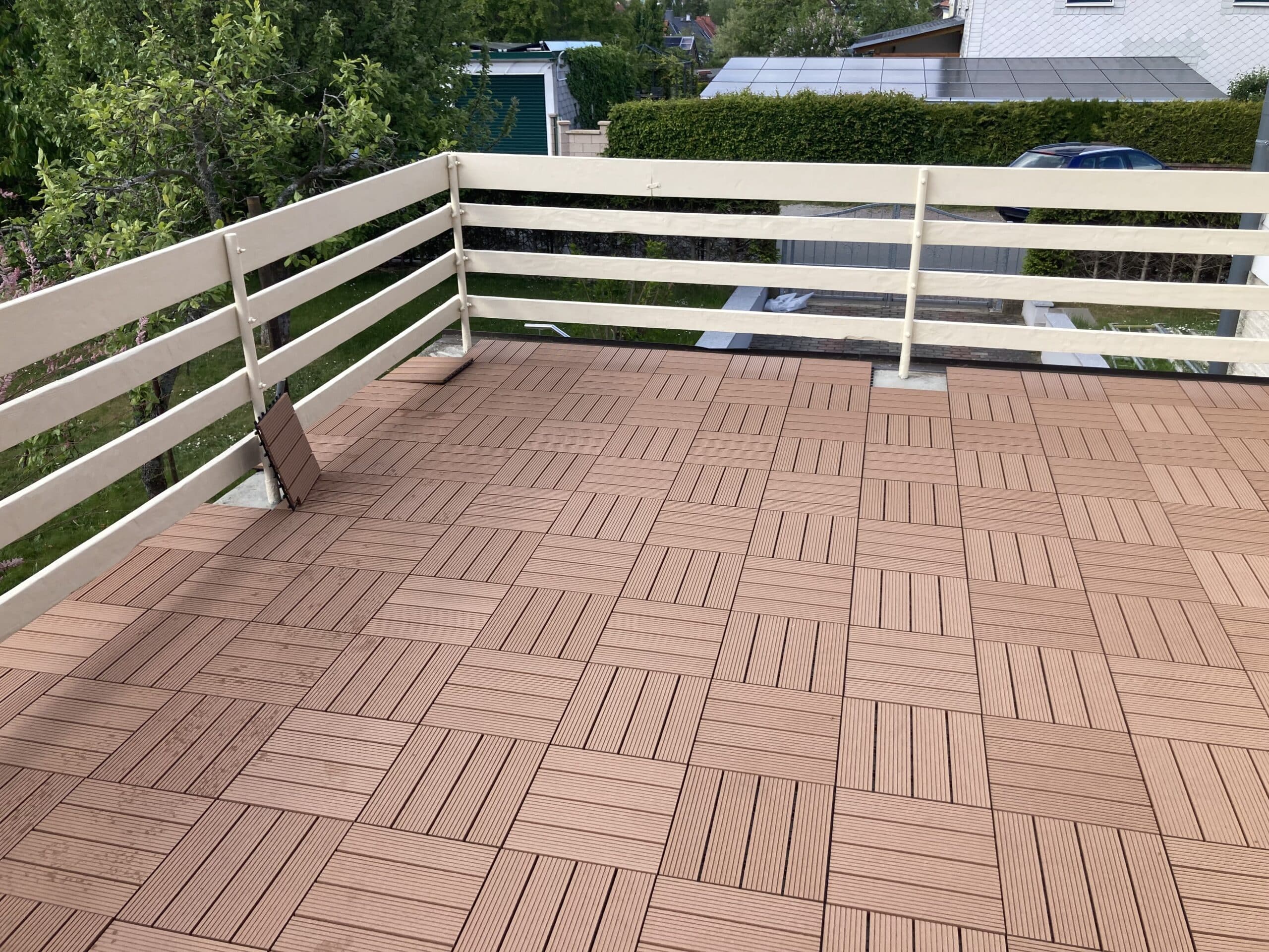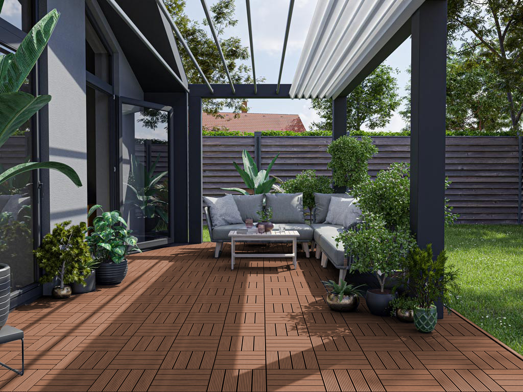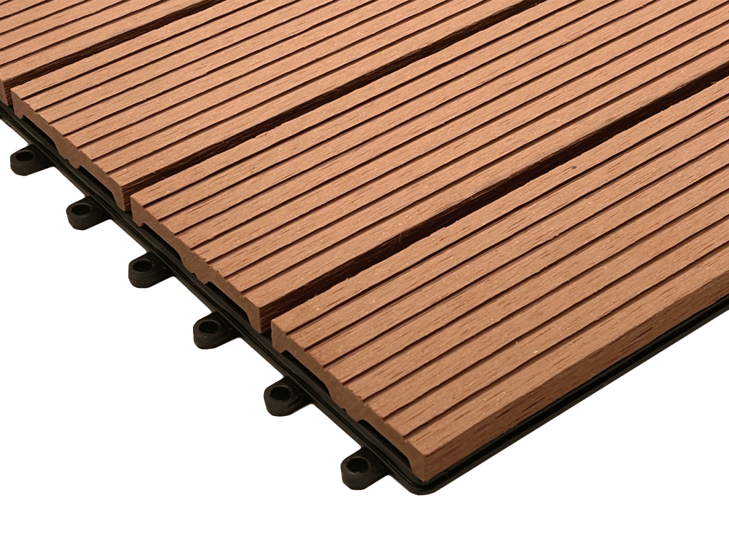 Ideal auch für den Barfußbereich einsetzbar. Die Kombination von Holz und Kunststoff verleiht der Terrasse eine hohe Qualität, so dass du lange Freude an deiner Terrasse hast. Das geriffelte Profil der Terrassenfliese wirkt rutschhemmend und sorgt für ein angenehmes Geherlebnis.