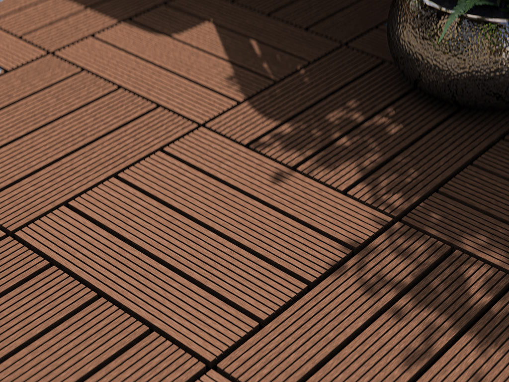 WPC-Terrassenfliese geriffelt braun